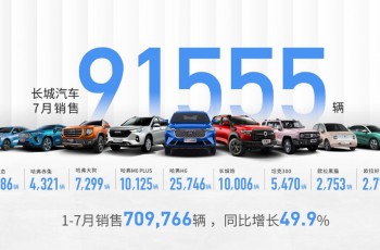 下半年开门红 长城汽车7月销售91,555辆